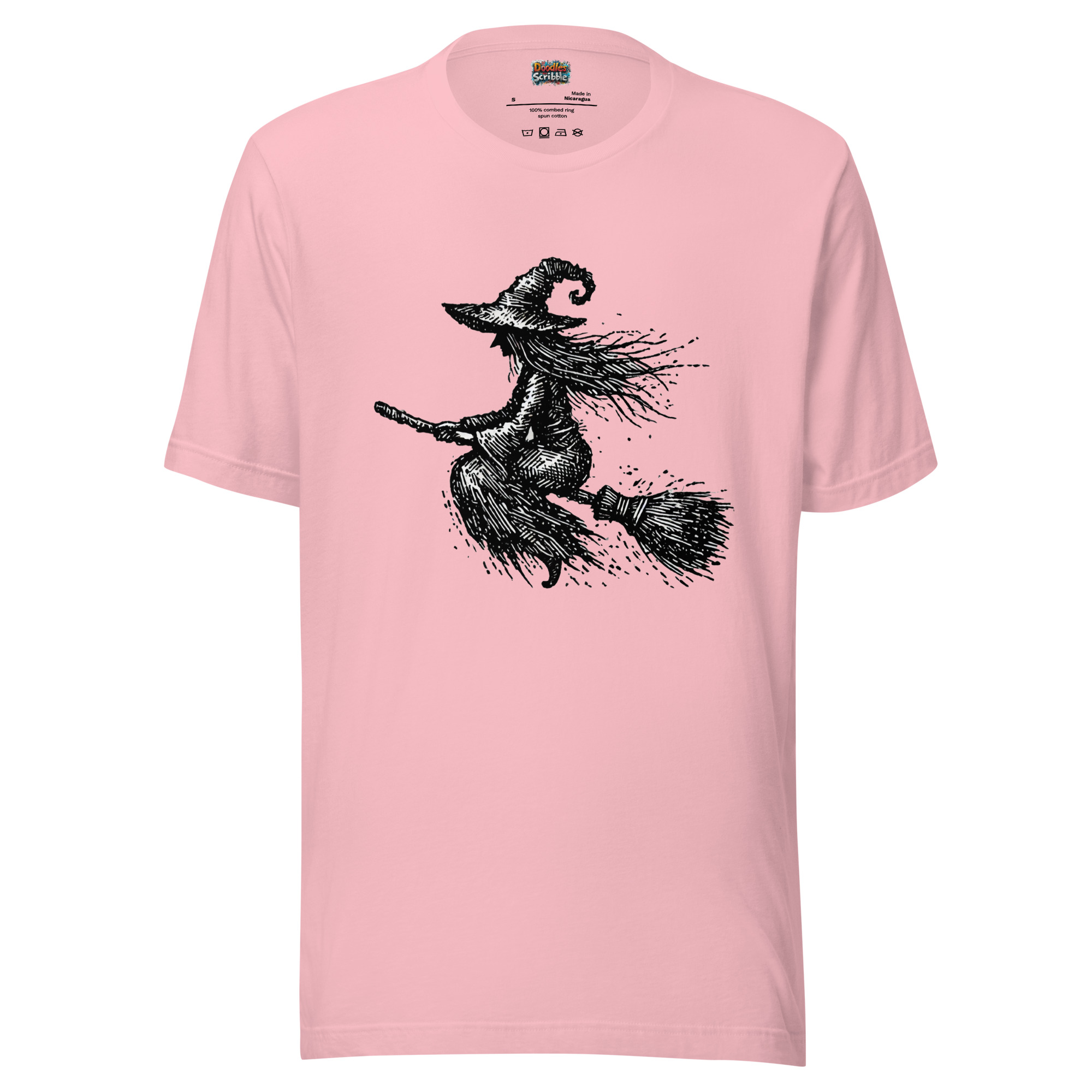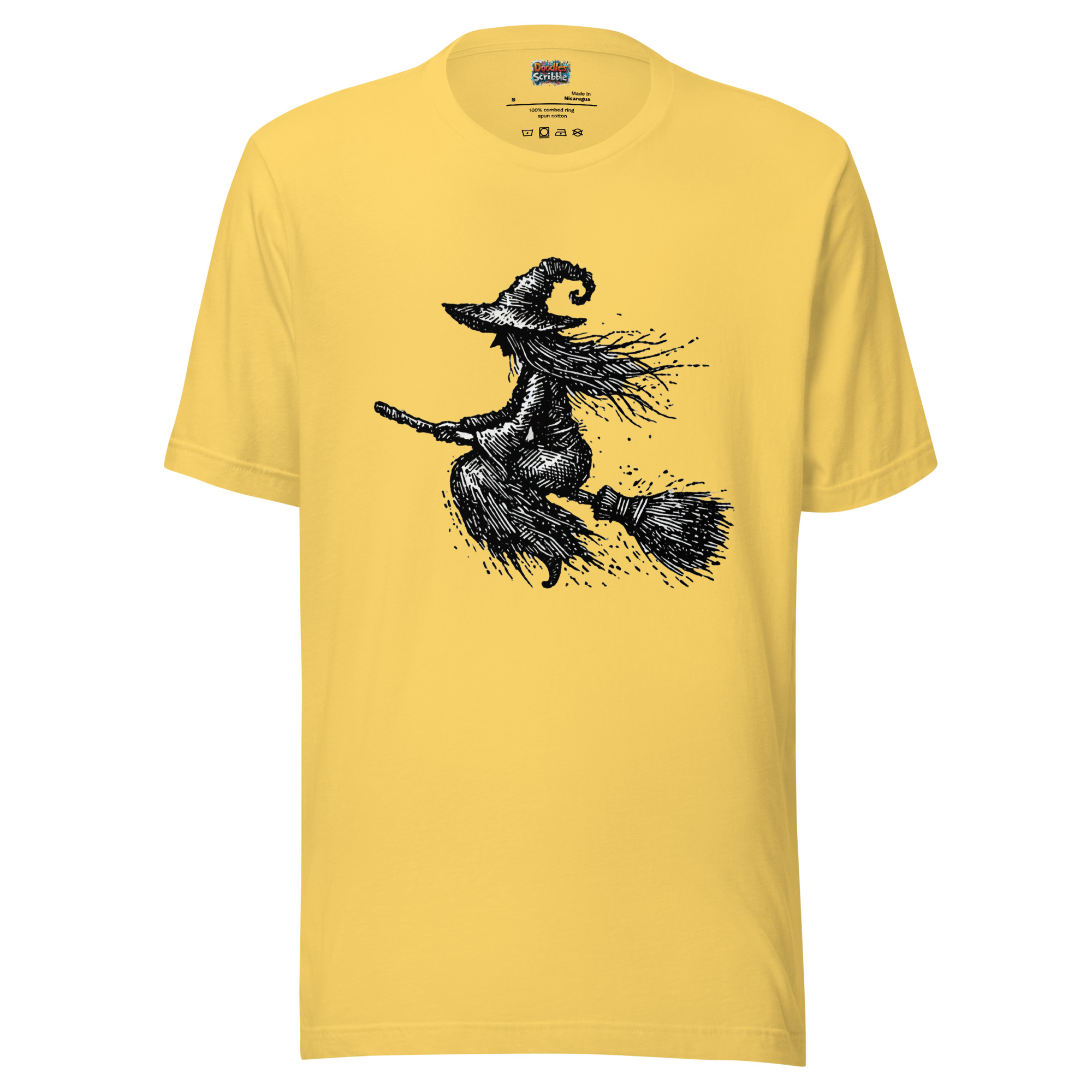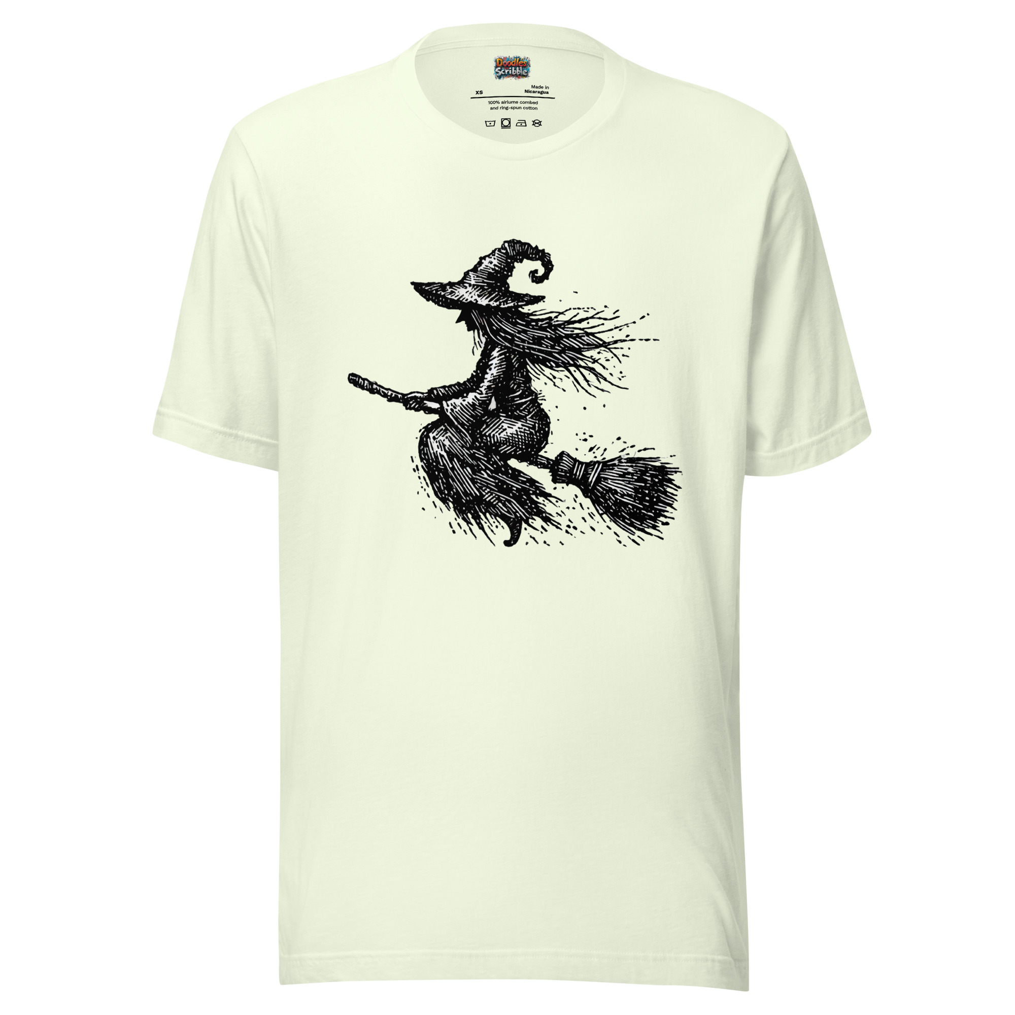 Scribbled Witch on a Broomstick Design for Halloween T-Shirts